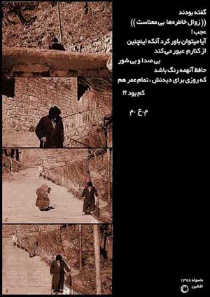 ........................................................................................امااينوبخونين: “بابا آب داد ما نوشتن را اينگونه آموختيم بابا آب را هدر داد آيا فرزندانمان نوشتن را اينگونه خواهند آموخت؟” اعتراف ميكنم خودم بعدازاينكه اين به ذهنم رسيد، نگران شدم!به نظر شما چي؟تاثير ميذاره؟ □ نوشته شده در ساعت 12:56 PM توسط afshin Saturday, January 12, 2002